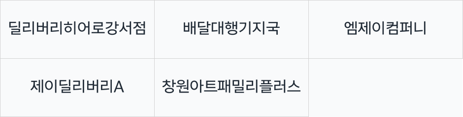이츠플러스 주요협력사 2025 10 경상남도 거제/김해시 양산시 창원시 유의사항 – 해당 협력사 정보는 원활한 이츠플러스 운영 지원 목적으로 협력사 대표님의 요청에 따라 게시되었습니다. 쿠팡이츠플러스 관련 문의 목적으로만 사용해 주시기 바랍니다. – 주요협력사는 위탁 업무 수행 결과에 따라 내부적인 기준으로 선정하며, 캠페인 운영, 혜택 등은 운영상황에 따라 변경될 수 있습니다. – 부적절한 사례가 발견될 경우 사전 고지 후 주요협력사에서 제외 될 수 있습니다.