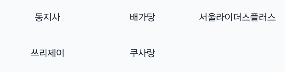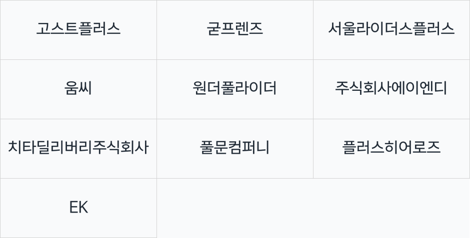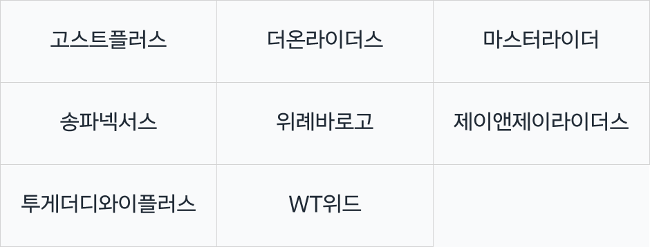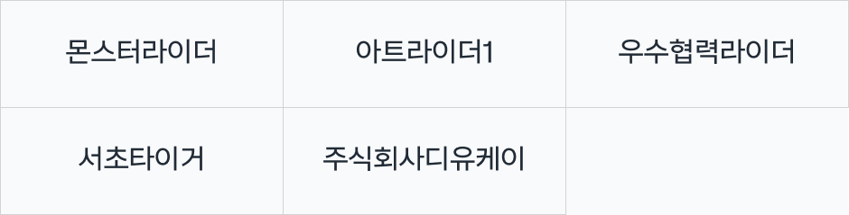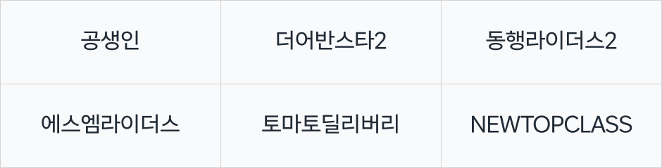 – 주요협력사는 위탁 업무 수행 결과에 따라 내부적인 기준으로 선정하며, 캠페인 운영, 혜택 등은 운영상황에 따라 변경될 수 있습니다.