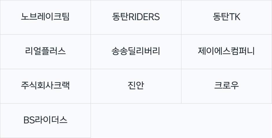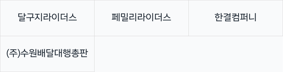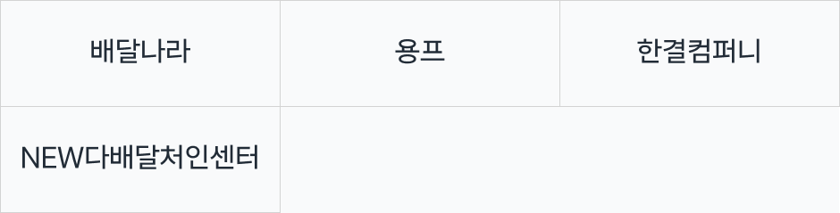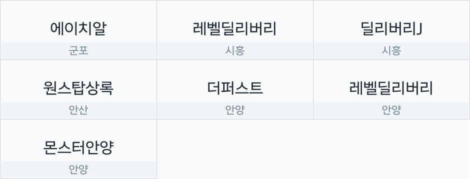 고양/양주/파주 군포/시흥/안산/안양 김포/부천 남양주/하남 성남 수원 안성/오산 용인 평택 화성 유의사항 – 해당 협력사 정보는 원활한 이츠플러스 운영 지원 목적으로 협력사 대표님의 요청에 따라 게시되었습니다. 쿠팡이츠플러스 관련 문의 목적으로만 사용해 주시기 바랍니다. – 주요협력사는 위탁 업무 수행 결과에 따라 내부적인 기준으로 선정하며, 캠페인 운영, 혜택 등은 운영상황에 따라 변경될 수 있습니다. – 부적절한 사례가 발견될 경우 사전 고지 후 주요협력사에서 제외 될 수 있습니다.