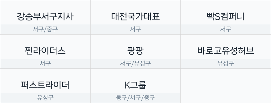 이츠플러스 주요협력사 2026 01 대전광역시 대전 유의사항 – 해당 협력사 정보는 원활한 이츠플러스 운영 지원 목적으로 협력사 대표님의 요청에 따라 게시되었습니다. 쿠팡이츠플러스 관련 문의 목적으로만 사용해 주시기 바랍니다. – 주요협력사는 위탁 업무 수행 결과에 따라 내부적인 기준으로 선정하며, 캠페인 운영, 혜택 등은 운영상황에 따라 변경될 수 있습니다. – 부적절한 사례가 발견될 경우 사전 고지 후 주요협력사에서 제외 될 수 있습니다.