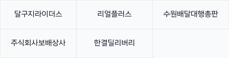 이츠플러스 주요협력사 2026 01 경기도 고양 군포/안산 광주/남양주/하남 김포 수원 성남 시흥 양주/오산/파주 용인/평택/화성 유의사항 – 해당 협력사 정보는 원활한 이츠플러스 운영 지원 목적으로 협력사 대표님의 요청에 따라 게시되었습니다. 쿠팡이츠플러스 관련 문의 목적으로만 사용해 주시기 바랍니다. – 주요협력사는 위탁 업무 수행 결과에 따라 내부적인 기준으로 선정하며, 캠페인 운영, 혜택 등은 운영상황에 따라 변경될 수 있습니다. – 부적절한 사례가 발견될 경우 사전 고지 후 주요협력사에서 제외 될 수 있습니다.