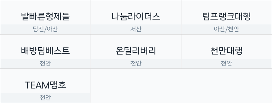 당진/아산/서산/천안 유의사항 – 해당 협력사 정보는 원활한 이츠플러스 운영 지원 목적으로 협력사 대표님의 요청에 따라 게시되었습니다. 쿠팡이츠플러스 관련 문의 목적으로만 사용해 주시기 바랍니다. – 주요협력사는 위탁 업무 수행 결과에 따라 내부적인 기준으로 선정하며, 캠페인 운영, 혜택 등은 운영상황에 따라 변경될 수 있습니다. – 부적절한 사례가 발견될 경우 사전 고지 후 주요협력사에서 제외 될 수 있습니다.