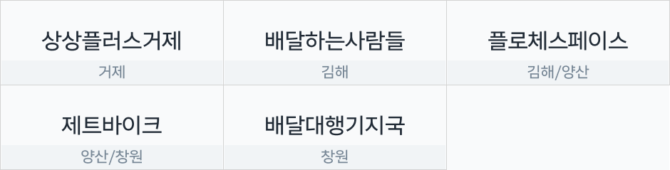 거제/김해/양산/창원 유의사항 – 해당 협력사 정보는 원활한 이츠플러스 운영 지원 목적으로 협력사 대표님의 요청에 따라 게시되었습니다. 쿠팡이츠플러스 관련 문의 목적으로만 사용해 주시기 바랍니다. – 주요협력사는 위탁 업무 수행 결과에 따라 내부적인 기준으로 선정하며, 캠페인 운영, 혜택 등은 운영상황에 따라 변경될 수 있습니다. – 부적절한 사례가 발견될 경우 사전 고지 후 주요협력사에서 제외 될 수 있습니다.